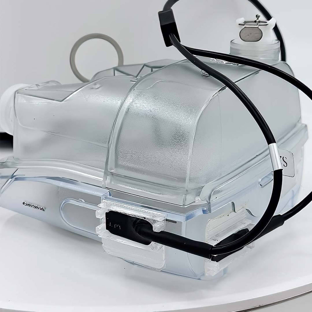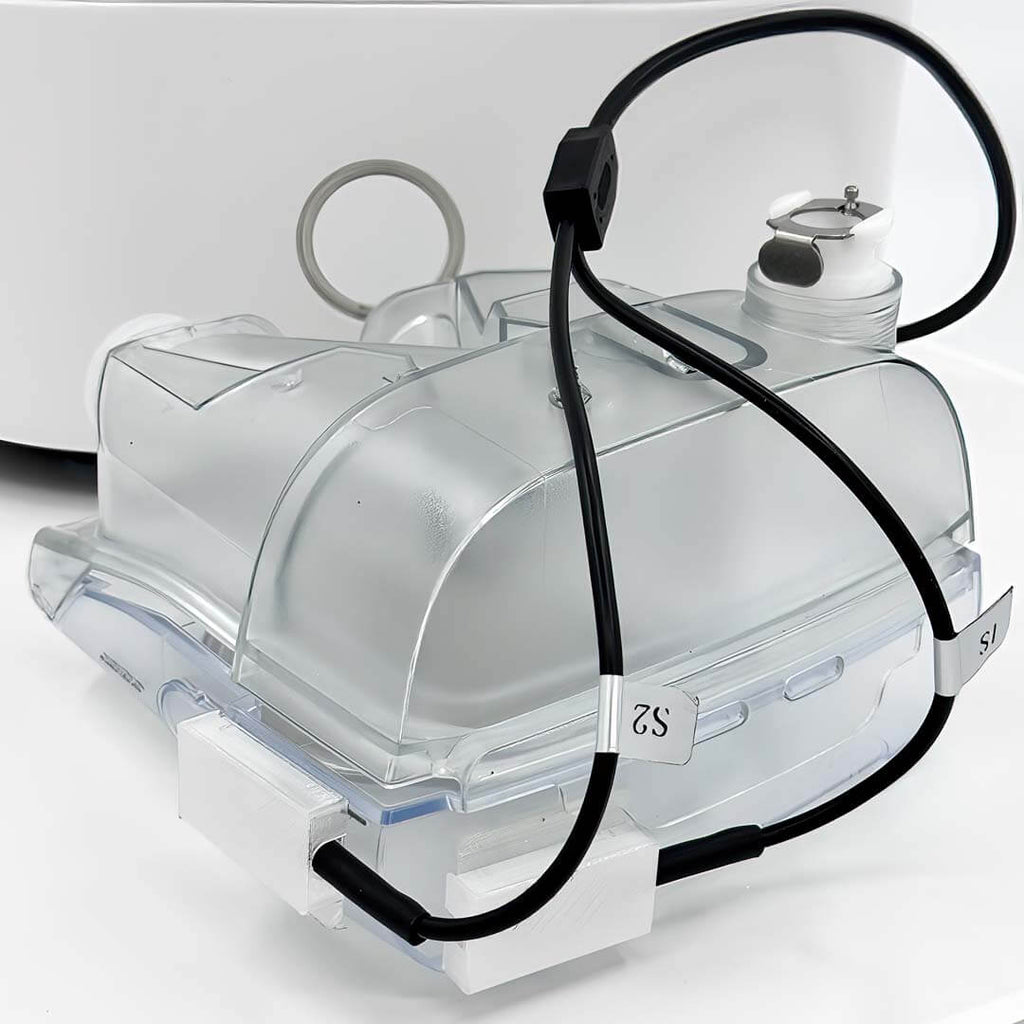 The water chamber includes our newly designed and improved CSpring Sensor Clips. They ensure secure attachment to your Mk2, Mk3, or MINI CPAP water chamber. With improved accuracy and durability, they maintain precise water level monitoring.